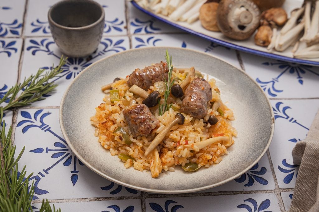 Pasta farcida de carbassa i rocafort amb salsa de bolets
