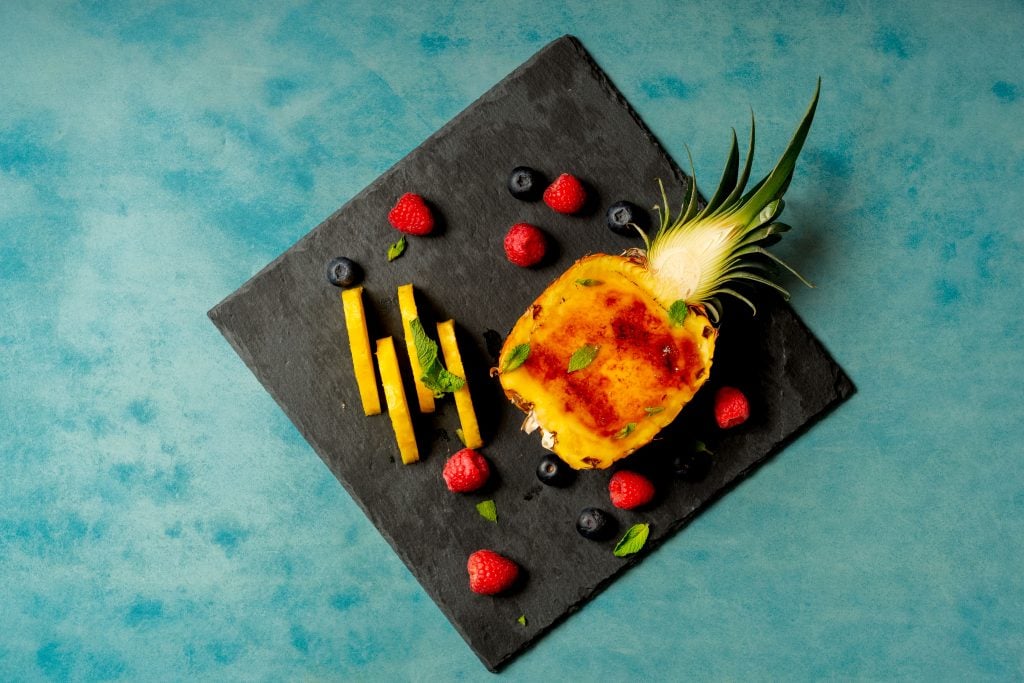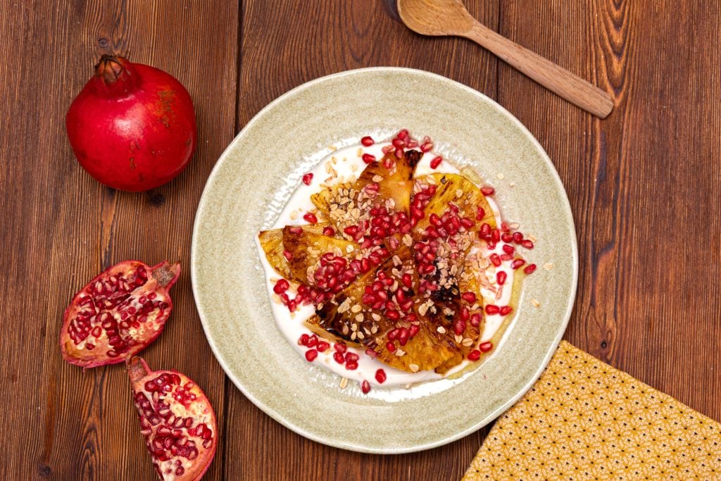 Granissat de pinya amb crema d’anacards i coco deshidratat