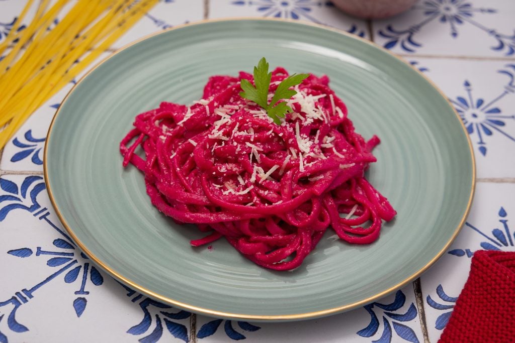 Pasta rosa amb remolatxa i iogurt